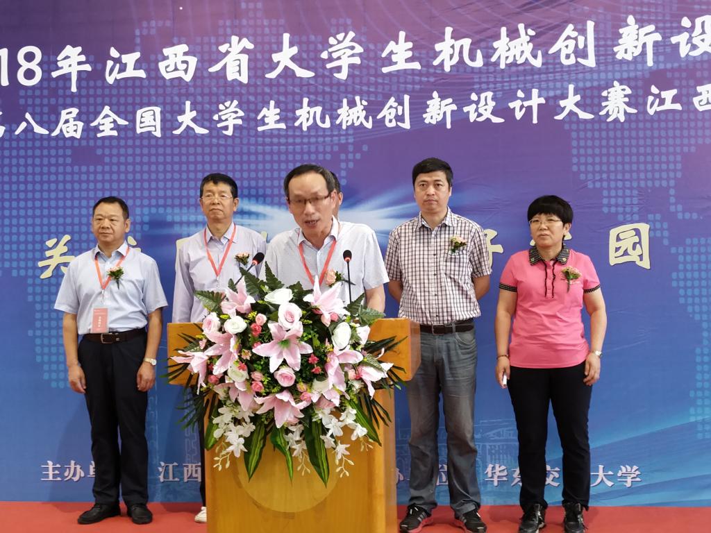 本网讯(机电学院)5月4日至6日,2018年江西省大学生机械创新设计大赛暨第八届全国大学生机械创新设计大赛江西赛区预赛在华东交通大学举行,全省共有31所高校184件作品参加本次比赛,参赛学校数及参评作品数均创历届比赛新高。经过现场演示、答辩等环节的激烈角逐,由我校机械与电子工程学院学生设计制作的6件作品全部获奖,并取得学校参加历届比赛以来最好成绩,其中《便携式小轿车侧位停车器》《新型高枝水果采摘器》获一等奖,并将代表江西省参加全国机械创新设计大赛,《便携式多功能水果采摘收集装置》获二等奖,《新型多车位小轿车停车装置》《自行车停车装置》和《立体智能车库》获三等奖。机电学院院长吴南星受邀担任本次比赛评委专家,并作为评委代表在开幕式上发言。