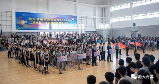 4月20日下午,由景德镇陶瓷大学主办、景德镇陶瓷大学校友篮球协会协办的2021年“欢送杯”篮球赛在我校湘湖校区体育馆二楼篮球场隆重开幕,教学督导、校友篮球协会名誉会长洪志华,校友总会办公室主任冯景华,体育与军事教学部部长陈利和,校团委书记李明文,校友篮球协会副秘书长邓冠清、校友杨杰以及佛山市智阜家具配件有限公司销售经理黄宗仁出席开幕式,各学院参赛队伍及学生600余人参加。
