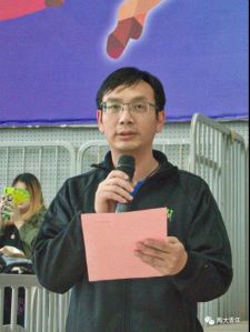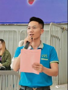 景德镇陶瓷大学校友篮球协会副秘书长、机械电子工程学院2004级校友、佛山市智阜家具配件有限公司总经理邓冠清代表陶大校友篮球协会致辞。邓冠清回顾了陶大篮球校友协会的发展历程以及现阶段取得的成就,他期待更多学生在毕业后能加入协会,一起爱篮球,爱运动。邓冠清预祝此次“欢送杯”篮球赛取得圆满成功。