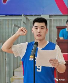 运动员代表、设计艺术学院2018级视觉传达专业白奥升,以及裁判员代表、体育与军事教学部2019级体育教育专业钟增,相继郑重宣誓,保证比赛的公平、公正。