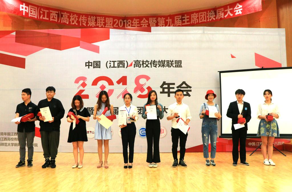 本网讯(文/黄高璐 张淑娴 潘昌余 何诗恬 肖希雯 图/钟玉洁)近日,由中国青年报社、中国(江西)高校传媒联盟组织的2018年年会暨主席团换届大会、“非常校园传媒奖”颁奖典礼在江西师范大学瑶湖校区举行。我校校报记者团获评2018年江西省“十佳校园媒体”、2018年江西省“十佳校园新媒体”,学生记者黄高璐同学获“十佳校媒人”称号,学生记者张淑娴、黄高璐、吴奇英三位同学获中国高校传媒联盟新闻扶持计划奖。同时,校报记者团记者、2015级陶艺专业张宁同学以综合考核第二的成绩入选中国(江西)高校传媒联盟第十届主席团。
