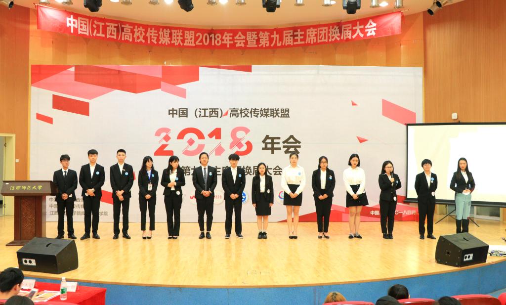 2018年年会暨主席团换届大会、“非常校园传媒奖”颁奖典礼汇集了全省90家会员媒体,240余名会员媒体代表参加会议。我校张宁同学通过材料报送、微信大众评审投票、现场竞聘演说、回答现场评委与观众提问以及候选人辩论等环节,在14名候选人中脱颖而出,入选第十届江西校媒联盟主席团,同时入选主席团的还有南昌大学、江西师范大学、赣南师范大学等高校的6名校媒记者。