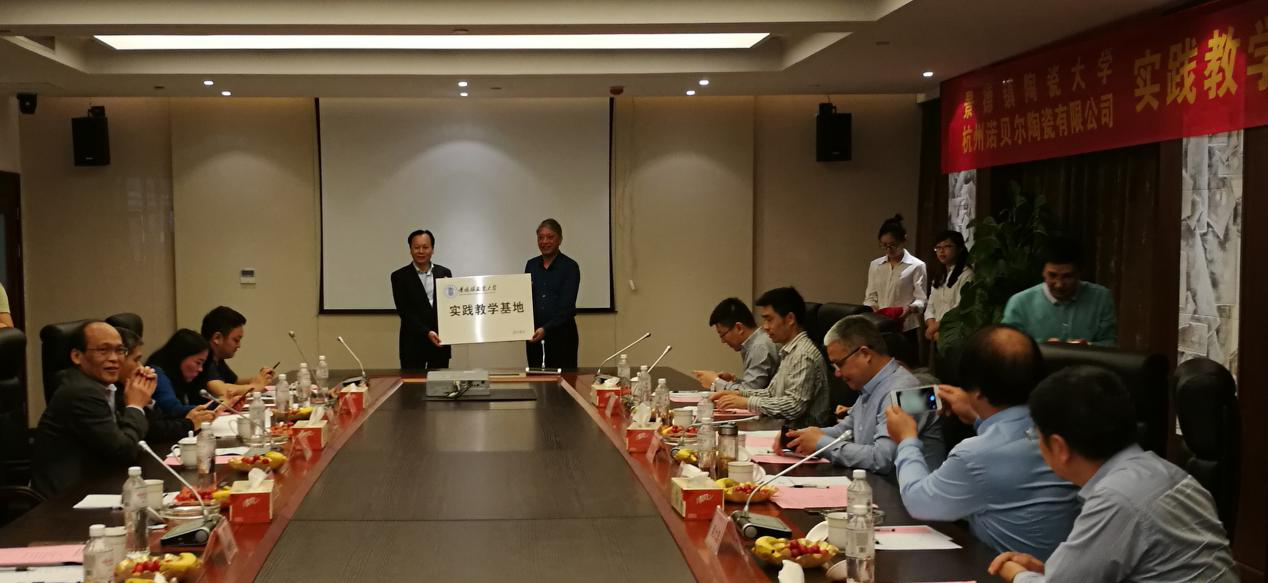 本网讯(教务处 舒凯征)近日,党委副书记胡林荣、副校长冯浩一行前往杭州诺贝尔陶瓷有限公司,就陶瓷产业卓越人才培养联盟工作开展座谈研讨,并出席“景德镇陶瓷大学——杭州诺贝尔陶瓷有限公司实践教学基地签约揭牌仪式”。