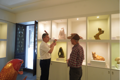 81岁高龄的刘远长回忆起大学时期的求学岁月,由衷地感谢母校的栽培。他谈到,大学时期是非常重要的学习阶段,自己现在所取得的成绩离不开那时候打下的专业基础和扎实功底。他还对学校的艺术教育、专业发展等提出了自己的观点,也表示很乐意回到母校,与在校师生交流分享成长经验与创作经历。年近80的黄云鹏一直关心学校的专业尤其是考古学等专业的发展。他展示介绍了自己最新创作的艺术作品,并谈到,自己每年都会举办3-4期古陶瓷鉴定高级研修班,传播古瓷文化,以瓷会友。希望能与母校加强交流与合作,丰富相关专业师生的教育教学实践课堂,为母校的建设发展尽一份力。