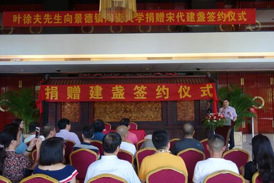 校长宁钢宣读了学校关于表彰叶徐夫校友的决定并讲话。他指出,88级工业造型设计专业叶徐夫校友自愿向母校捐赠自己收藏的100件有较强学术和收藏价值的宋代建盏及标本古瓷,体现了情系母校、心向母校的深挚感情,学校对此表示衷心感谢;这次接受的捐赠,不仅可以为学校教学科研和一流学科建设提供有力支持,更将成为校友回馈母校的模范,在陶大学子中产生深远影响。他强调,校友是母校宝贵的资源和财富,一直以来广大校友关心、支持母校的改革发展,为母校教学科研、人才培养等工作做出了很大贡献,从校友身上看到了陶大精神的弘扬,看到了陶大人优秀品质的传承;真诚希望广大校友继续关注支持母校的建设与学科发展工作,祝福校友们事业蒸蒸日上,为母校带来更大的骄傲和自豪。