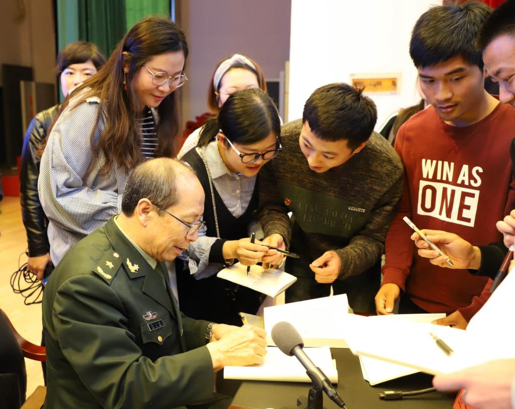 三个小时的报告,听者中有校领导、老师和学生,甚至不乏学校退休多年的耄耋老人,没有人迟到,更没有人早退,有的只是传出来一阵盖过一阵的热烈掌声。“将军所讲的日益强大的中国,就像他的《苦难辉煌》一书写的一样,令人振奋”“自信、睿智、丰富的信息,还有亲和力……”许多师生在聆听报告后,在朋友圈里发感想。
